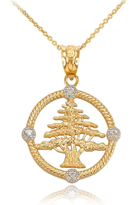 Amazon Com 10k Yellow Gold Cedar Tree Of Lebanon Diamond Charm Pendant La Blingz Clothing Shoes Jewelry